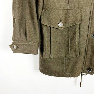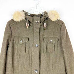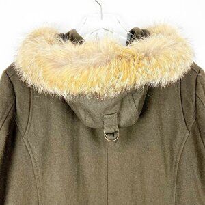 Marc New York Coat Womens Size 14 Olive Green Wool Blend Fur Trim Hooded Duffle