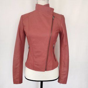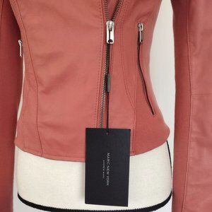 Marc New York Coral Pink Felix Knit Panel Moto Leather Jacket