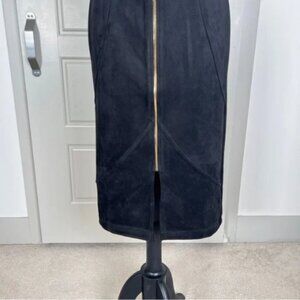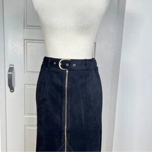 Marc New York Faux Suede Pencil Midi Skirt Gold Zip Front Detail Belted Sz XS