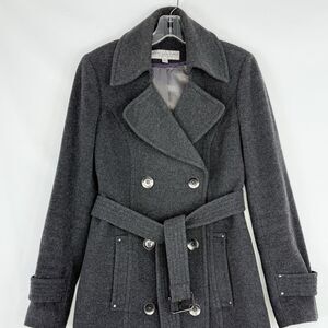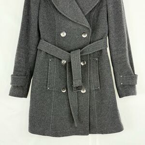Marc New York Gray Wool Trench Coat Double Breasted Belted Womens Size 6 Small
