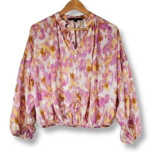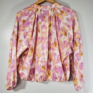 Marc New York High Neck Billow Sleeve Abstract Print Blouse Pink Size XS