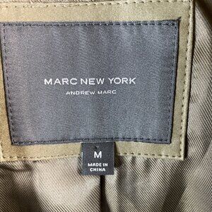 Marc New York Jacket Women Size Medium Biker Faux Leather Olive Moto Windbreaker