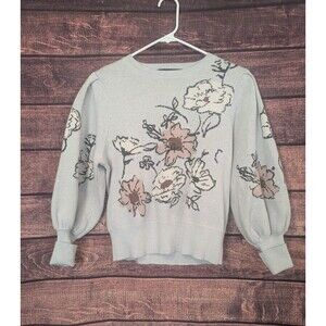 Marc New York Knit Floral Crewneck Pullover Sweater Womens M Grey