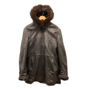 Marc New York Leather Jacket Women’s Size L Fox Fur Trim Collar Full Zip Coat
