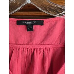 Marc New York Linen Top Fuschia Pink Puff Sleeve With Smocked Waist SZ Large