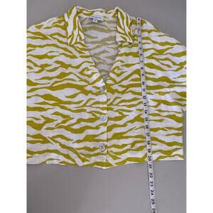 Marc New York Linen Yellow Zebra Print Button-down Crop Top Shirt Large
