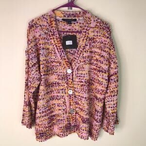 Marc New York Multi Color Shaggy Sweater Cardigan Button Up Tweed Size Small NWT