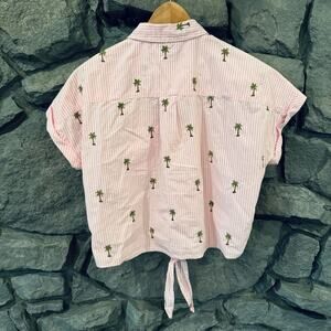 Marc New York Pink Stripe Button Down Tie Palm Tree Shirt Womens S