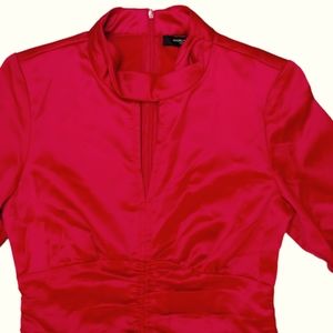 Marc New York Blouse. Removable Shoulder Pads. Zipper Closure. 95% Polyester 5% Spandex. New with Tag. Some snags on the shoulder and neck. Barely noticeable.