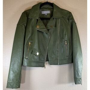 Marc New York Size Small Vegan Leather Moto Jacket Green Gold Hardware