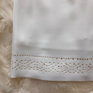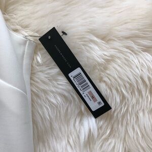 True to size. Dry clean. Crew neck. Sleeveless. Back zip closure with hook and eye clasp. Laser cutout hem. Lined.