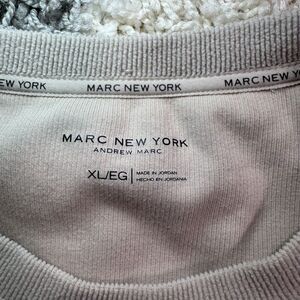 This is a Marc New York women's sweater in size XL, featuring a beige color and a ribbed crew neckline. The sweater is a pullover style with long sleeves, making it a versatile and classic addition to any wardrobe. Made from a polyester cotton blend, this solid-colored sweater offers both comfort and style for everyday wear.
