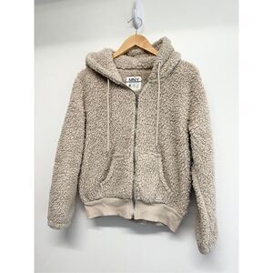 Marc New York Teddy Bear Hooded Jacket Size Extra Small Tan Fleece Full Zip NWT