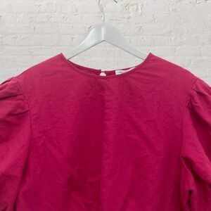 Marc New York Top Size M Puff Sleeve Linen Viscose Twist Front Hot Pink Fuchsia