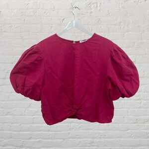 Tags: #MarcNewYork #PuffSleeve #LinenTop #HotPink #FuchsiaTop #TwistFront #SummerTop #TrendyTop #SizeM #CroppedTop
