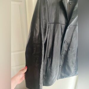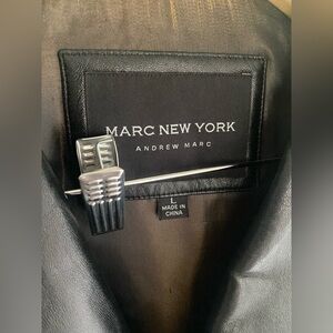 Marc New York Vintage Leather Jacket Mens Black Trench Coat Andrew Size Large L