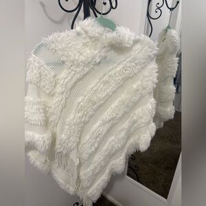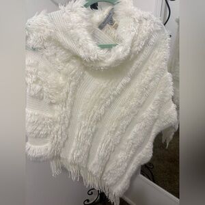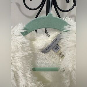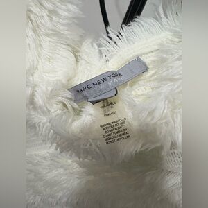 Embrace the chill with the Marc New York White Cape, a luxurious addition to your winter wardrobe. This plush cape features a soft, fuzzy texture that wraps you in warmth and style. Its elegant design is perfect for layering over your favorite outfits, making it a versatile choice for any cold-weather occasion. In good condition.