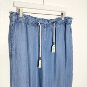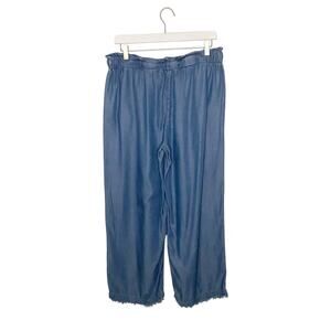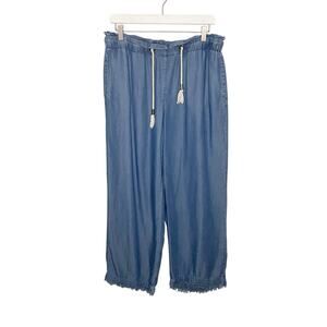 Marc New York Wide Leg Chambray Cropped Fringe Hem Pants Small