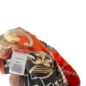This unique skirt features a striking geometric print and an asymmetric hemline, creating a dynamic and eye-catching silhouette. The mixed media design incorporates various textures and fabrics, adding depth and interest to the piece. Perfect for making a statement, this scarf skirt pairs beautifully with a simple top and heels for a chic and sophisticated look.