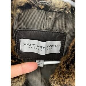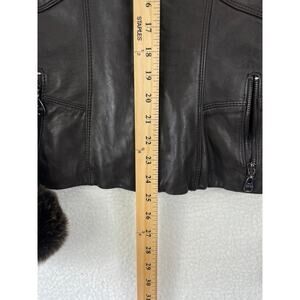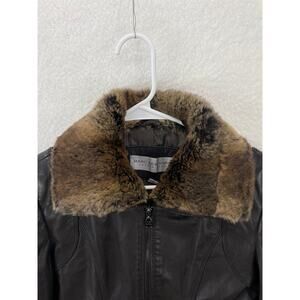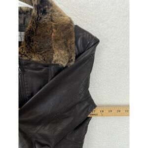 Marc New York Women's Brown Zip Leather Jacket Natural Fur Coat Size US XS
