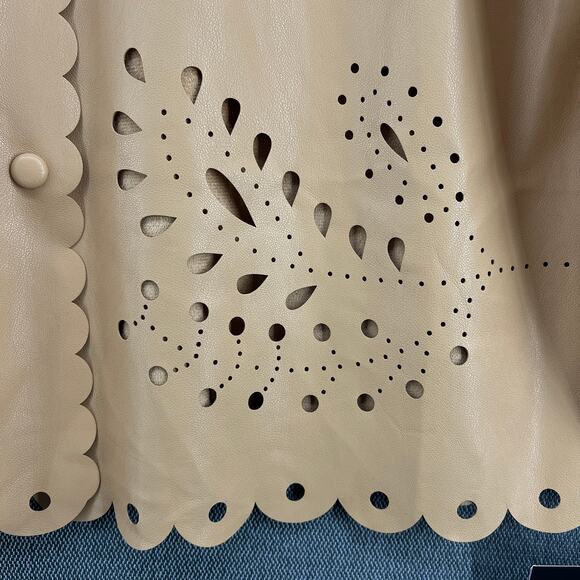 Marc New York Women's Faux Leather Cut Out Design Raw Edge Beige Jacket Size L