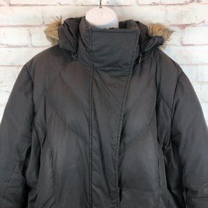 Marc New York Women's Plus 2XL Brown Long Down Feather Faux Fur Puffer Jacket