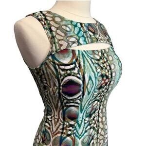 Marc New York Andrew Marc Peacock Print Sleeveless Sheath Dress with Cutout Detail - Size 6 - EUC