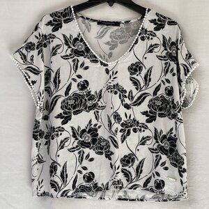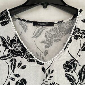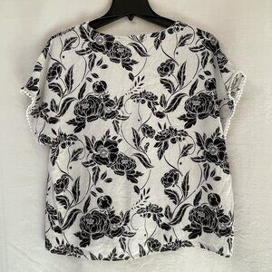 Marc New York Womens XL Black White Floral Linen Boho Cottage Beach Cottage