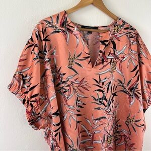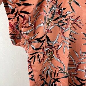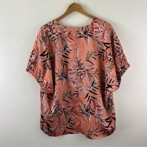 Marc New York XL Coral Floral Leafy Print V-Neck High Low Hem Top