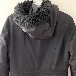Nice looking jacket with faux fur and zip front with buttons and pockets and cinch waist in good condition size XS