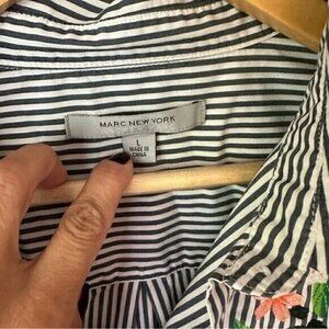 Marc New York blouse Striped Embroidered floral Womens Large in excellent condition no flaws. Elevate your style game with the Marc New York Striped Embroidered Floral Blouse.