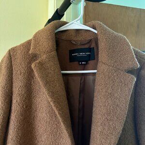 Stay cozy and stylish with this Marc New York by Andrew Marc Camel Fuzzy Long Teddy Coat in size 2. This coat is a perfect blend of luxury and practicality—super soft and incredibly warm, making it ideal for chilly weather. The camel color is timeless and versatile, pairing easily with all your fall and winter outfits. Featuring an inside breast pocket for added convenience, this coat is both fashionable and functional. There are two pockets on the exterior.
