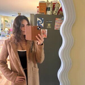 It’s in excellent condition, practically new (worn only a couple of times), but unfortunately, it’s just a bit too small for me. I'm 5'3, size 4, and the coat falls just past my knees.