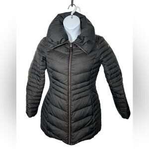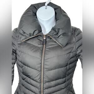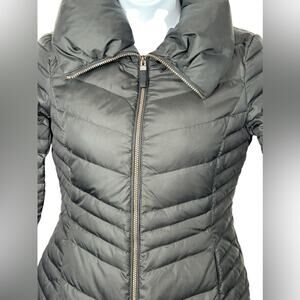 Keywords: Down filled, Puffer, Quilted, Full front zip, Thigh length. This coat comes from a smoke-free home.