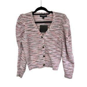Marc New York pleated puff sleeves cardigan sweater mauve M