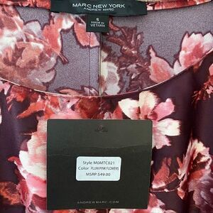 Marc New York Sz S NWT Purple Pink Satin Floral Hem Knotted Tie Blouse