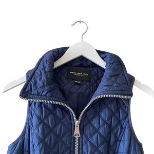 Marc New York Womens Medium M Quilted Sleeveless Vest Blue Full Zip SZ XS