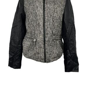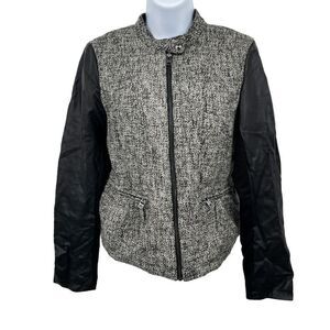Marc New York Andrew Marc Wool Blend Tweed Vegan Leather Moto Jacket Coat
