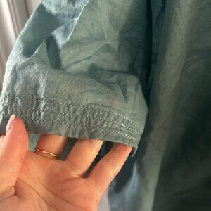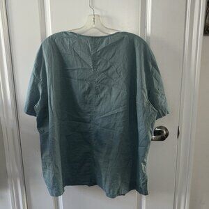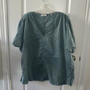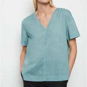 Size 46, equivalent to a size XL. 100% organic cotton. Like new condition. Lightweight and comfortable. Non-stretch. More elegant than a T-shirt and more casual than a classic blouse: this enchanting blouse top made of high-quality, lightweight cotton voile fabric with a silky touch. This short-sleeved piece impresses with its elaborately finished, gathered shoulder section, silky-soft feel and high level of comfort. Casual: The deep V-neckline at the front, the central dividing seam and the triple-stitched hem. Great: there are virtually no limits to the possible combinations.