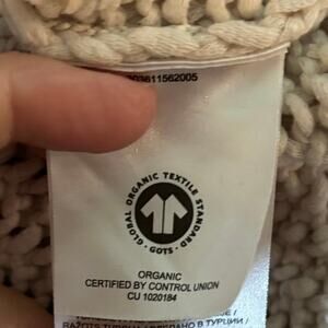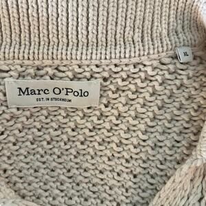Marc O’Polo chunky knit sweater. Open weave. V-neck. Collared. Short sleeve. Nice neutral natural/beige color. 100% Cotton. Size XL. Preowned, no flaws.