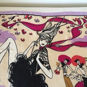 Gorgeous 100% silk scarf. Approximately 34" x 35." A few pulls; barely noticeable. See pictures.