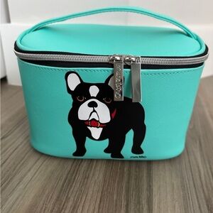 Chic and playful aqua cosmetic bag set featuring a charming dog print. Perfect for organizing your beauty essentials in style.