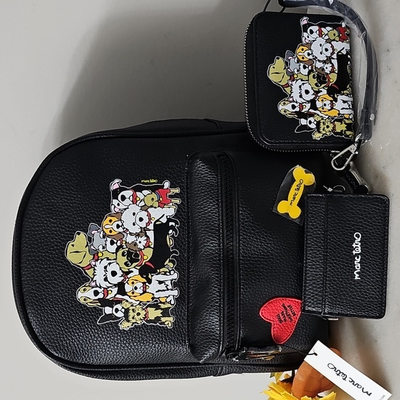 NWT, Black Marc Tetro backpack with adjustable straps & front zipper pocket, slip pocket and zip pocket. Wallet with removable wristlet strap, zip around closure and 4 pockets. Card holder with 2 exterior slots & 1 open slot.