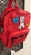 Stylish red Marc Tetro Westie backpack featuring playful patches.