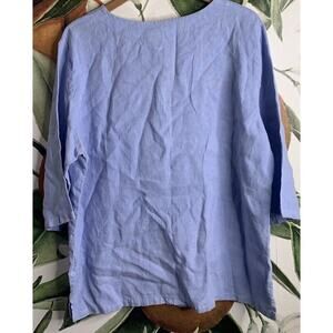 Marc + Ware Womens 1X Blue Boat Neck 100% Linen Blouse Top