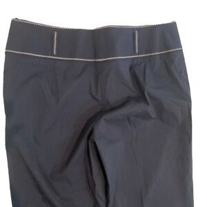 These high quality pants are made in Germany. Marc aurel black lightweight stretch high waisted wide leg pants feature side zip entry for smooth front and back. Contrast zig zag stitching at waist band and belt loops. Made of cotton, nylon and spandex. Euc