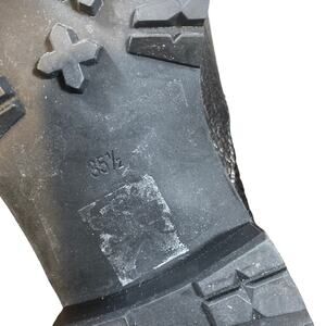 These Marc by Marc Jacobs Metallic Black Ankle Rain Boots are perfect for rainy days! These boots are designed for women, and come in size 35.5. The black metallic finish adds a stylish touch, and the ankle-height provides extra protection from the elements. These boots are perfect for any woman looking to stay fashionable and dry in wet weather.
