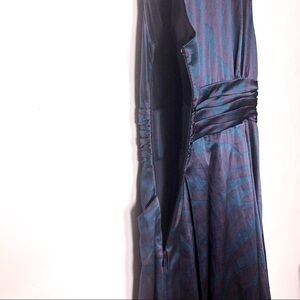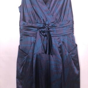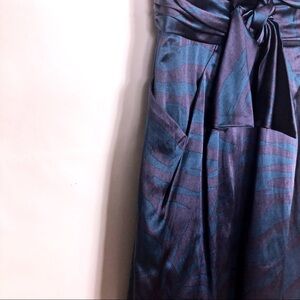 Purple and teal blue zebra print dress with pockets. Side zipper closure, Sleeveless. This is the perfect desk to dinner dress.