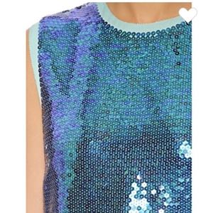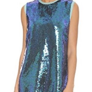 This Marc by Marc Jacobs dress puts a glamorous, feminine spin on the clean-lined shift. Mirrored, iridescent sequins create allover sheen, and picot edges make a delicate outline. Exposed back zip. Lined.