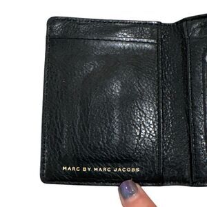 Marc by Marc Jacobs Black Pebbled Leather ID Card Holder Case Gold Logo Luxury